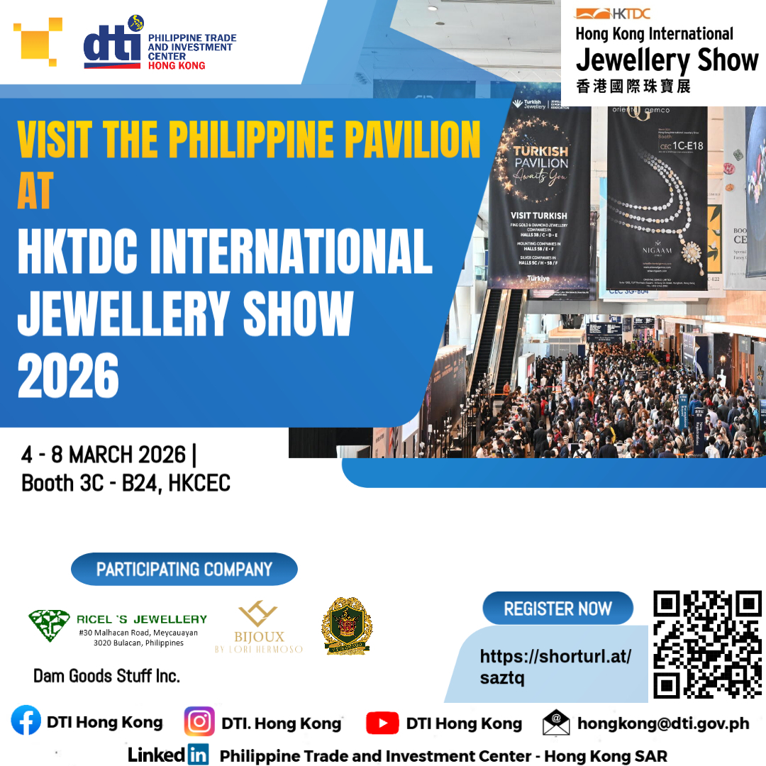 The Philippine Trade and Investment Center - Hong Kong (PTIC-HK) is thrilled to announce that the Philippines participation in the 42nd HKTDC Hong Kong International Jewelery Show this coming March!