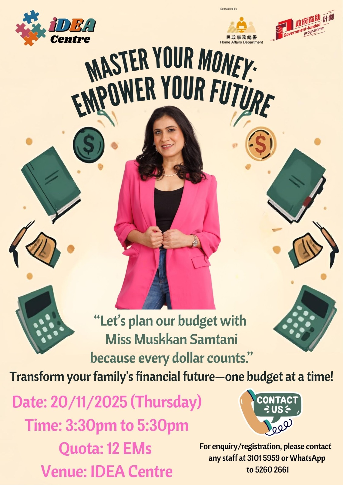 Ready to get your money game on point? 💸 Join us on November 20th at 3:30 PM for some fun budgeting tips with Miss Muskan Samtani!